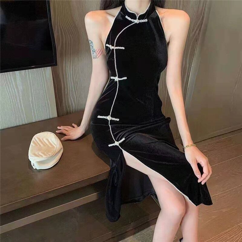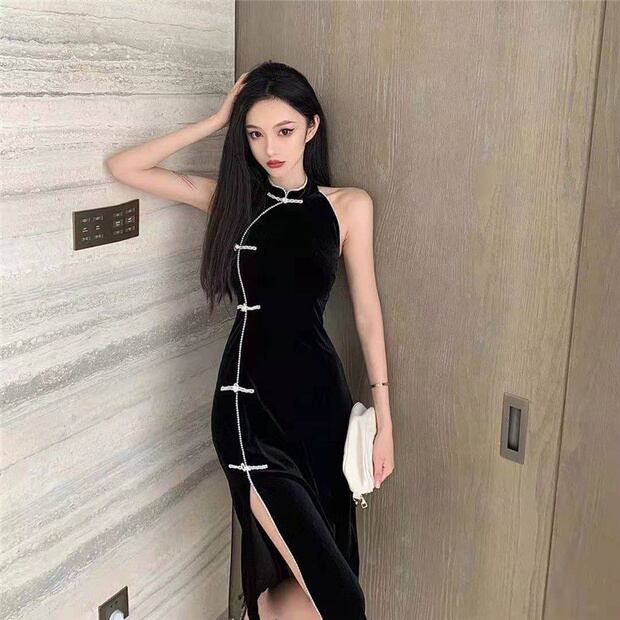サマースタイルスタンダードブラックドレス レトロ 夏物 ナナファッション56300396000