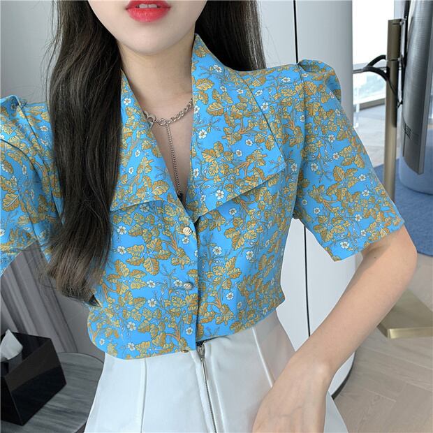 レッドサマースリーブフローラルシャツ ハイウェストウェストワイドレッグショーツ ストリート 夏物 ブルマー 花柄 ワイドパンツ ナナファッション7429554707