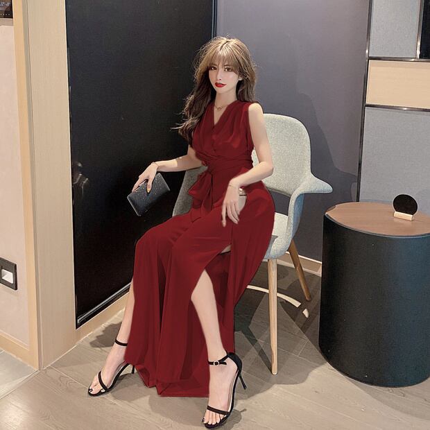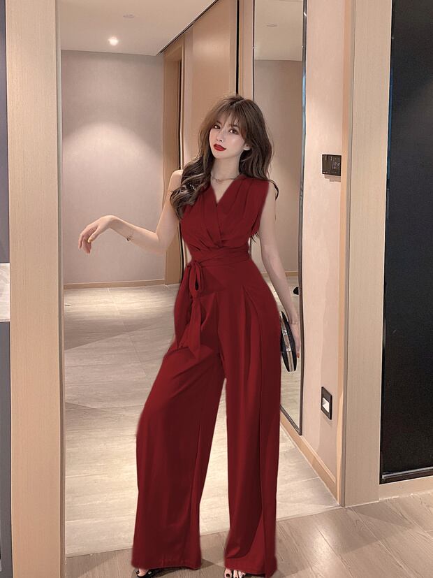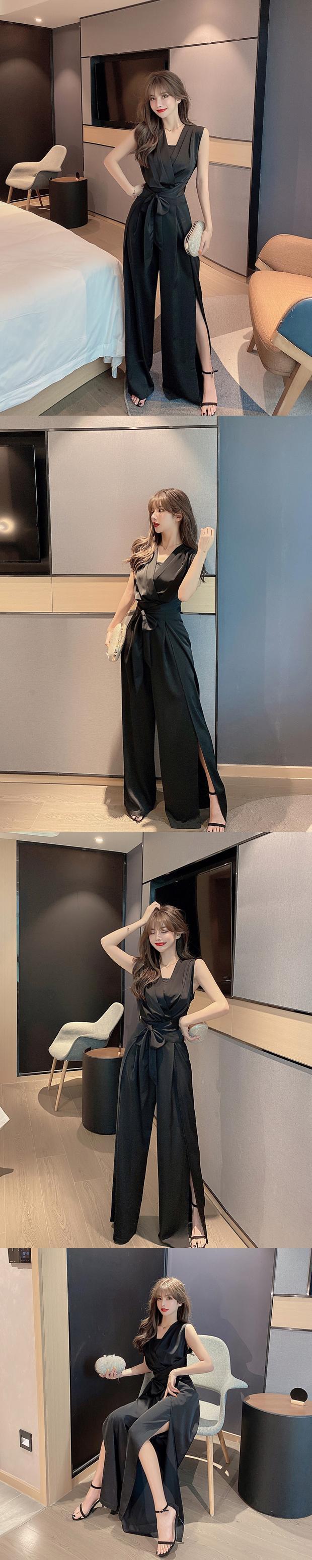 ジャンプスーツ オールインワン サマーウェストVネックノースリーブカジュアルレディース 夏物 ナナファッション61100833069