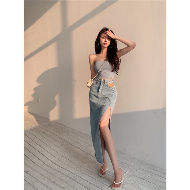 ウェストAラインサイドスリットスカート サマー薄手 夏物 ナナファッション22234959150