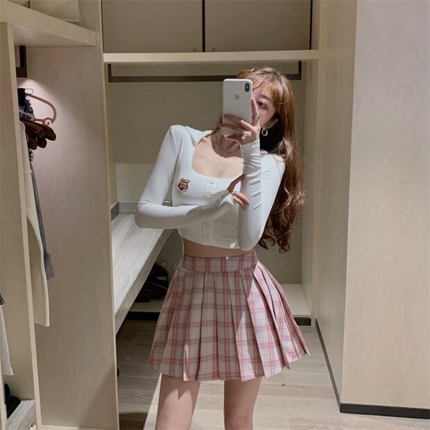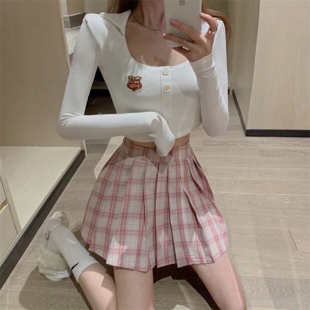 色:ブルーチェックスカート,ピンクチェックスカート,ブルーラベルトップ,ピンクのラベルトップ