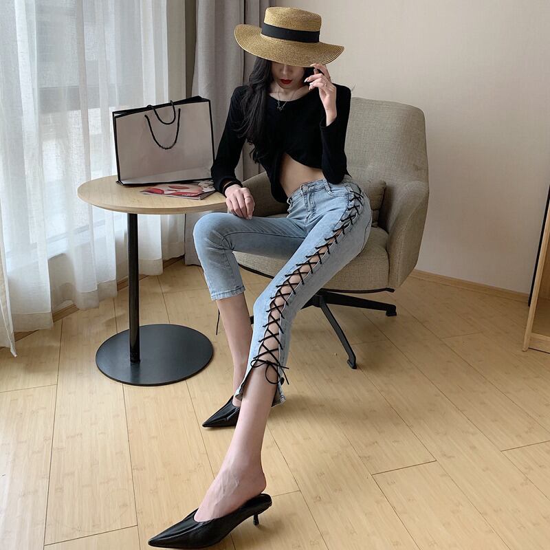 サマースタイルクロスハイウェストウェストスリムクロップドジーンズ レディース 夏物 ナナファッション97935937836