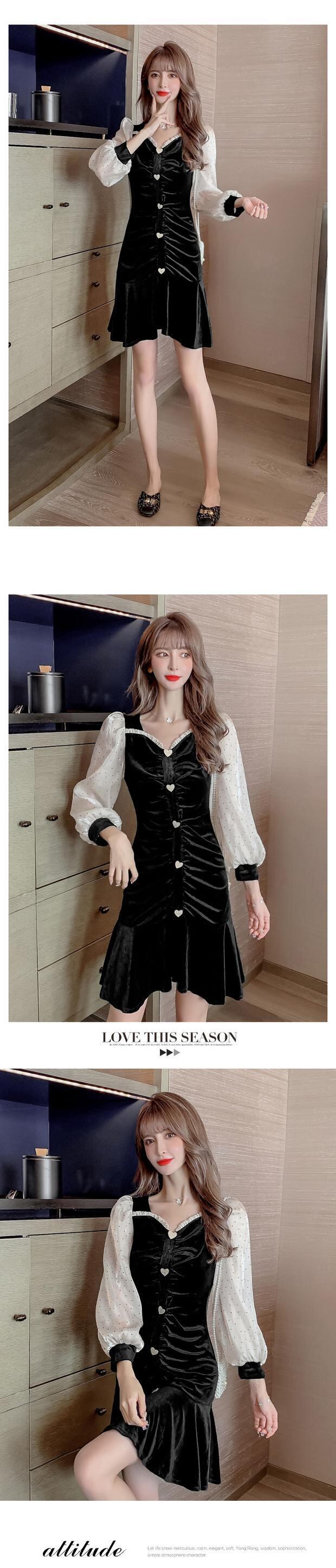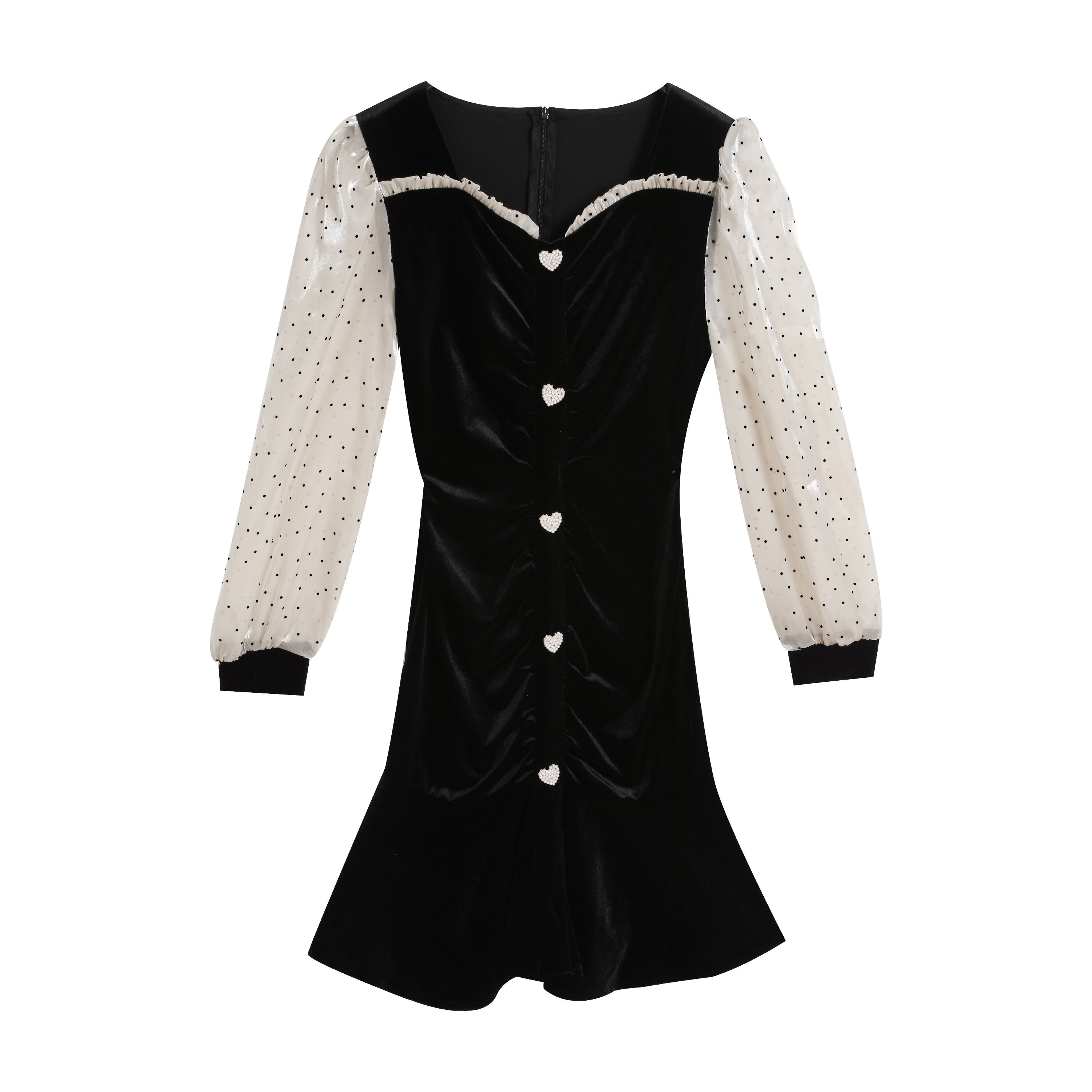 ドレス スプリングウェストゴールドベルベットスカート レディース 春物 フラワーデザイン ナナファッション68524668477
