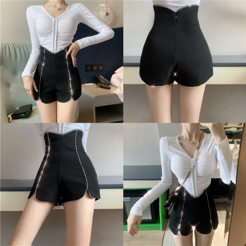 サマーハイウェストウェストラインストーンAラインショーツ ルーズカジュアルパンツ レディース 夏物 ブルマー ナナファッション787538132