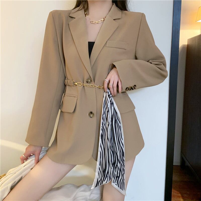 ジャケット レディーススプリングルーズショートブラックトップス ロング ストリート 春物 ハーネス ベルト ナナファッション51828336946