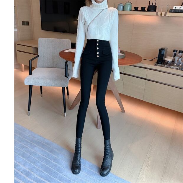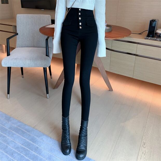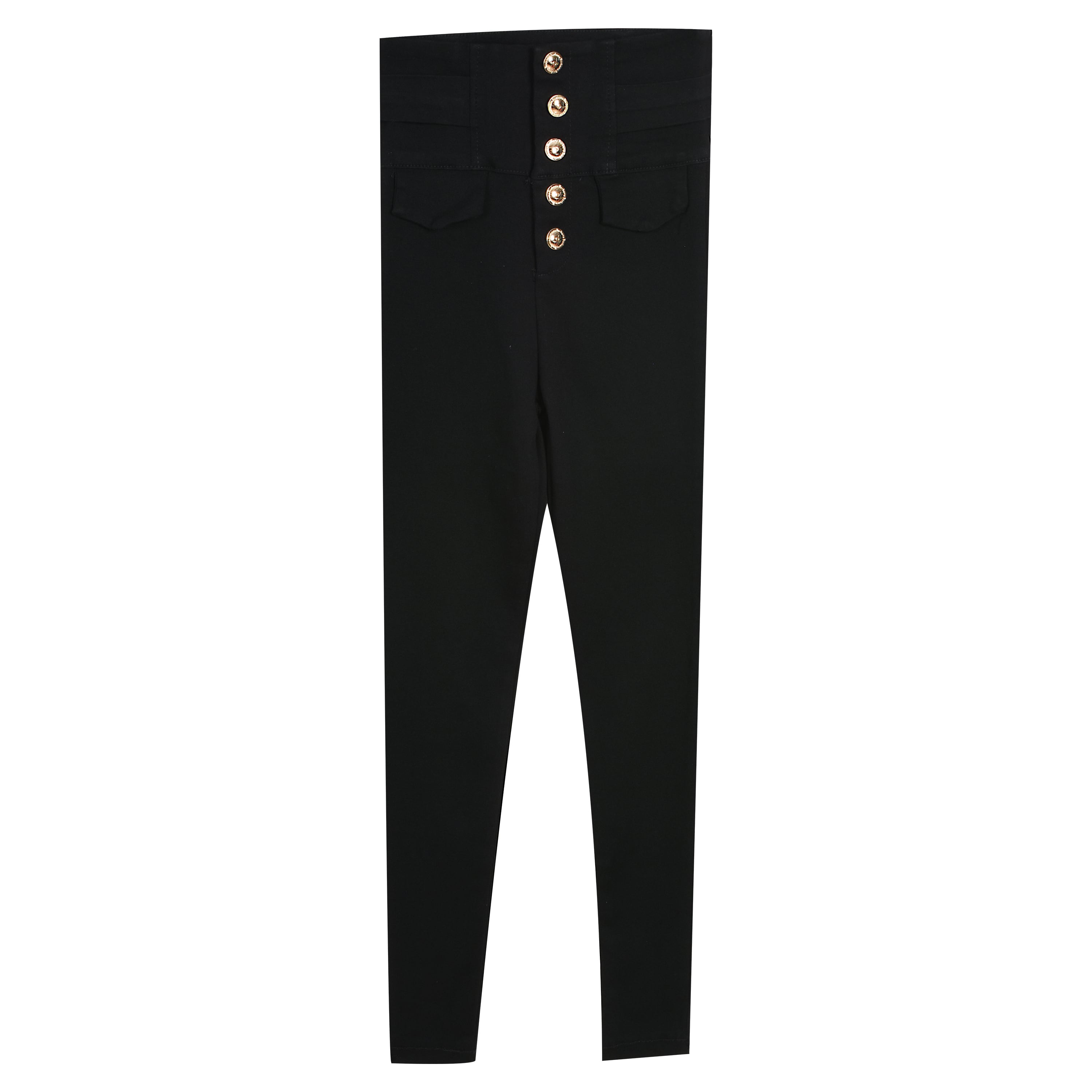 スプリングオータム薄手ブラック ハイウェスト 春物 秋物 ナナファッション42914133936