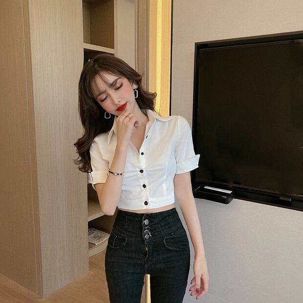サマースタイルシャツ Vネックスリムショート薄手トップス 夏物 ナナファッション10271237739