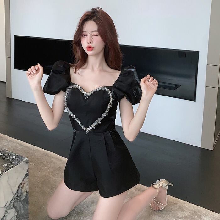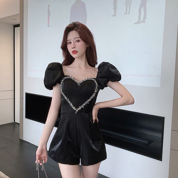 ジャンプスーツ オールインワン サマースタイルスリーブハイウェストウェストルーズワイドレッグワンピースショーツ 夏物 ブルマー ワイドパンツ ナナファッション41840380657
