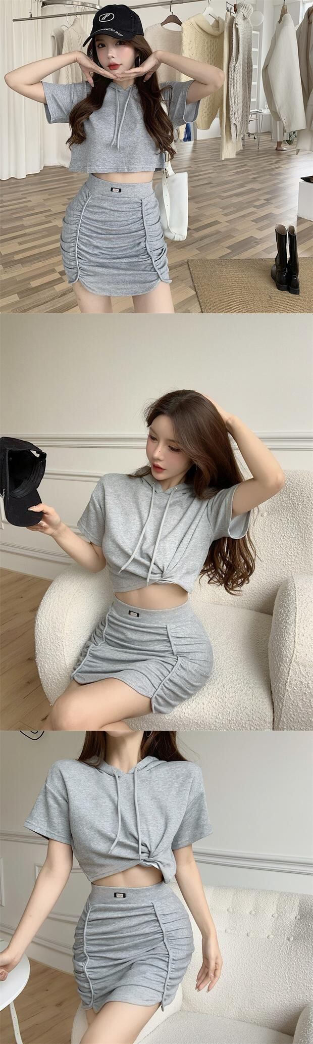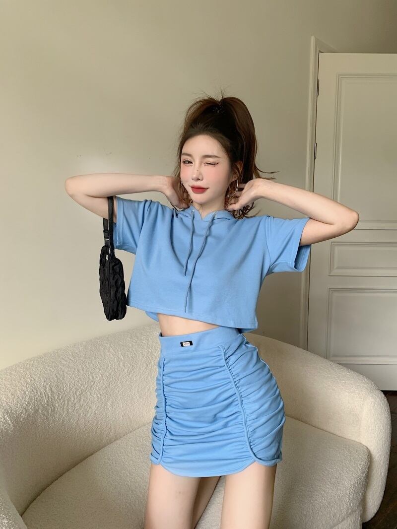 レッドカジュアルサマークロップトップ トップス ハイウェストウェストスリムスカート ストリート 夏物 ナナファッション95533025992