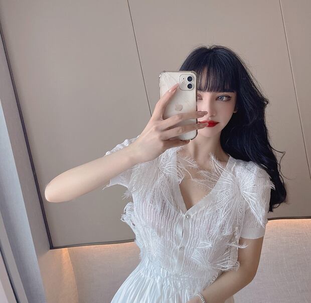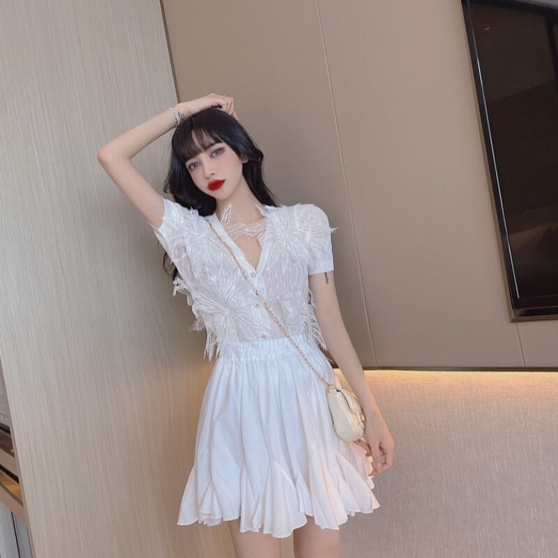 刺繍Flowerデザイン レースニットカーディガンハイウェストウェストスリムスカート レディース フラワーデザイン ナナファッション23779112575