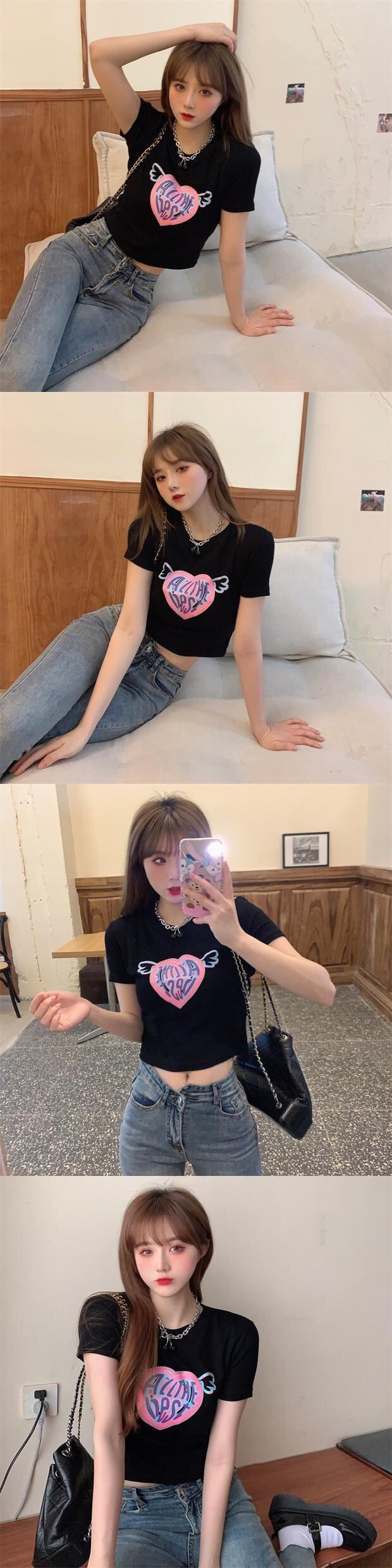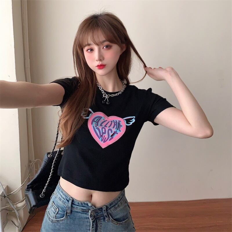 ショートTシャツ サマーレッドハイウェストウェストトップス 大人ガーリー スウィート キュート カジュアル 夏物 ナナファッション29154731703