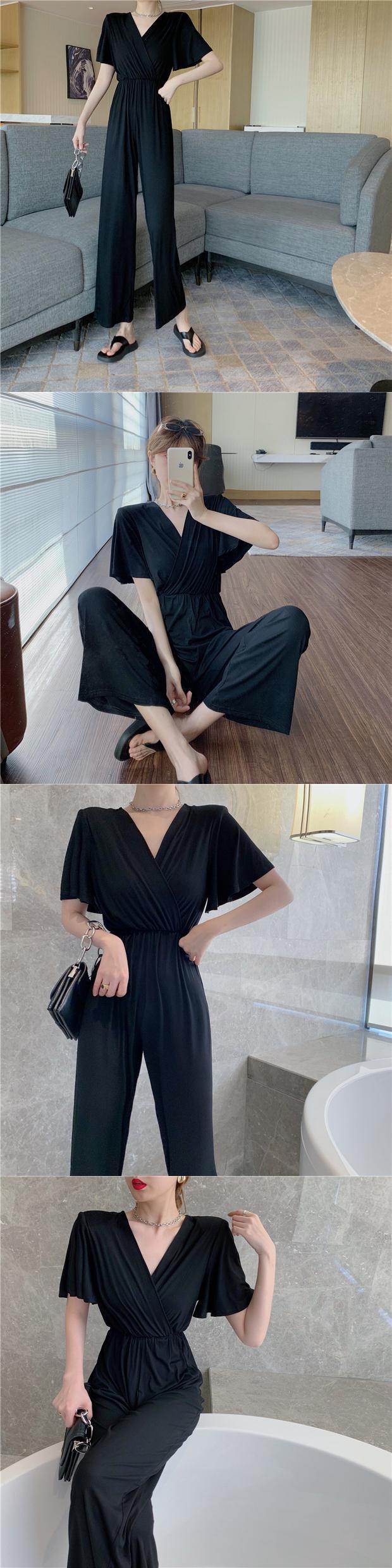ルーズカジュアルジャンプスーツ オールインワン Vネック薄手ハイウェストワンピース ナナファッション71103788150