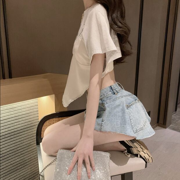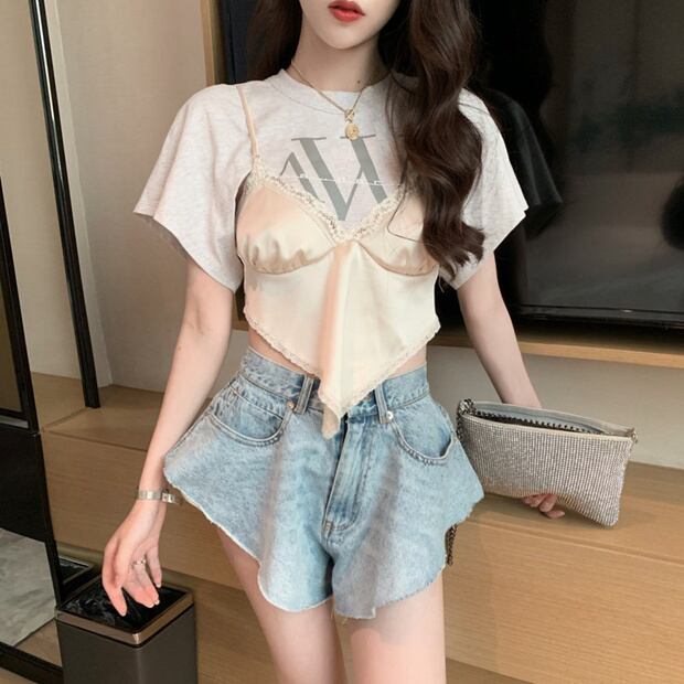 レッドサマートップス ハイウェストウェストワイドレッグショーツ レディース ストリート 夏物 ブルマー ワイドパンツ ナナファッション52787459062