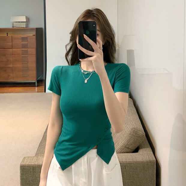 Tシャツ サマースリムホワイトトップス 夏物 ナナファッション36217341374