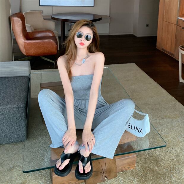 トップス ジャンプスーツ オールインワン ルーズカジュアルハイウェストウェスト薄手ワイドレッグパンツ ストリート ワイドパンツ ナナファッション24723001206