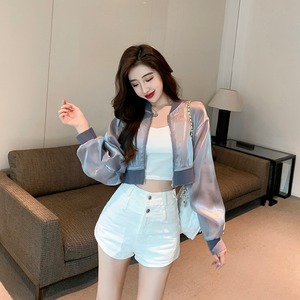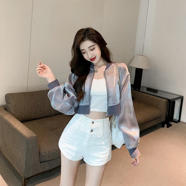 サマースタイルジッパーショートシャツ ジャケット レディース 夏物 シルク ナナファッション54734253607