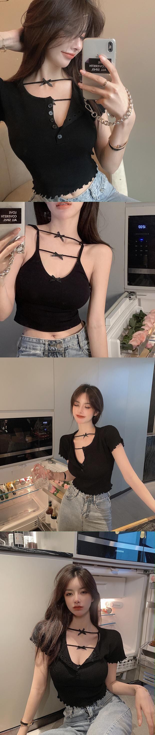 サマーニットセーター トップス 薄手ショートホワイトスリムTシャツ 夏物 ピュア ナナファッション48987964606