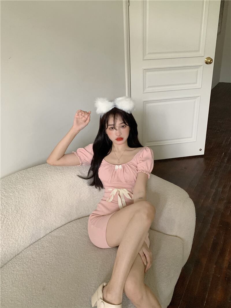 ウェストアームニットドレス レディース 大人ガーリー スウィート キュート カジュアル ピュア スクウェア ナナファッション59596826366