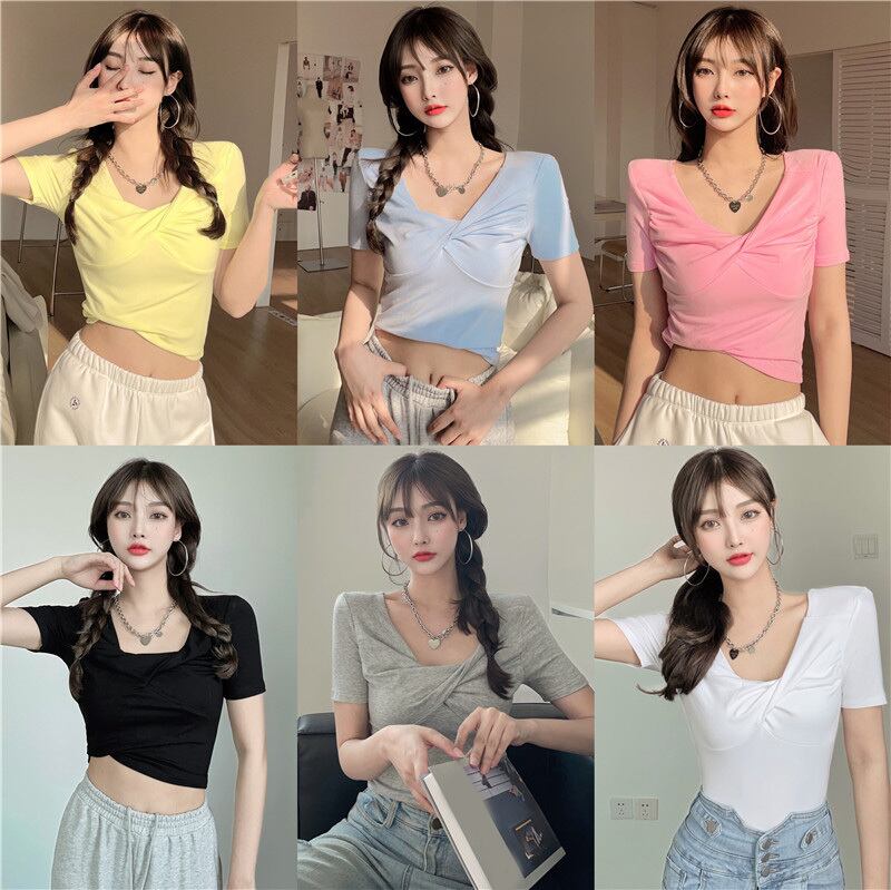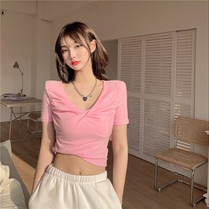 サマースリムVネックTシャツ レディース 夏物 ナナファッション38582836975