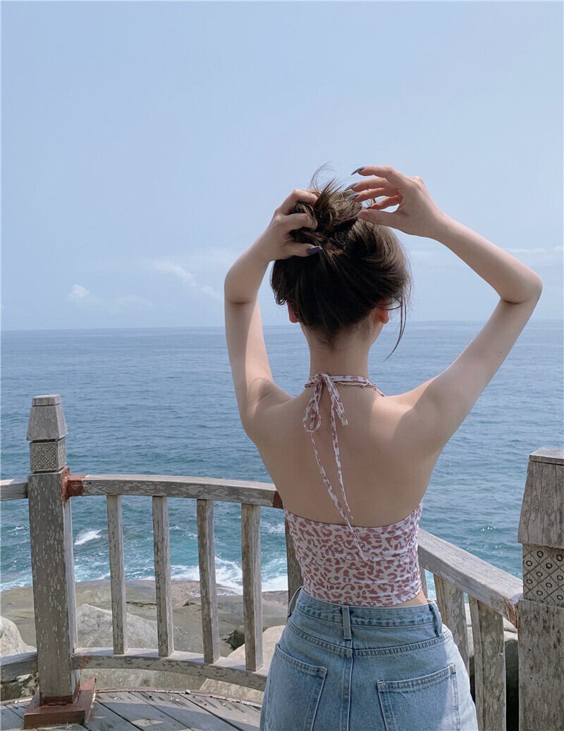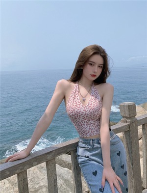 スタンダードレオパードプリント柄サマースタイル薄手ショートバックウェストトップス レトロ 夏物 ナナファッション96218238811