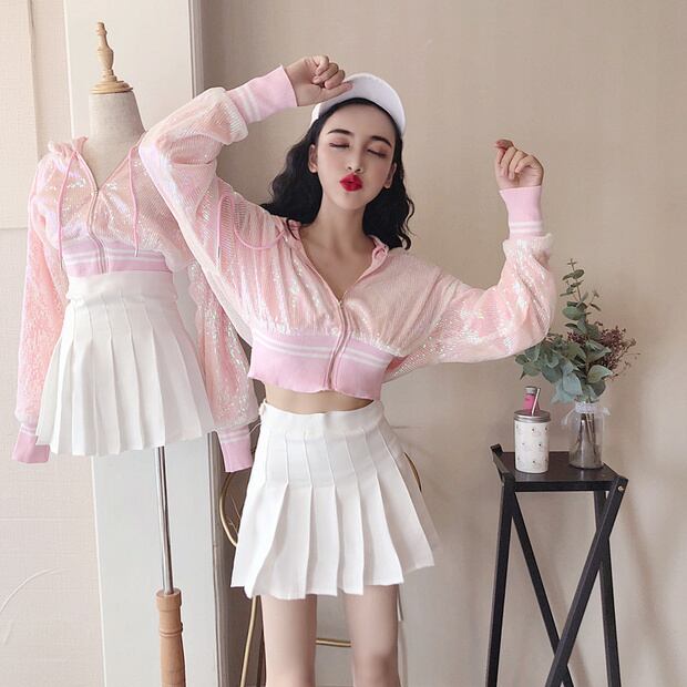 フードジャケット カーディガンハイウェストプリーツスカート サマーレディース ロング 大人ガーリー スウィート キュート カジュアル 夏物 ナナファッション14742877838