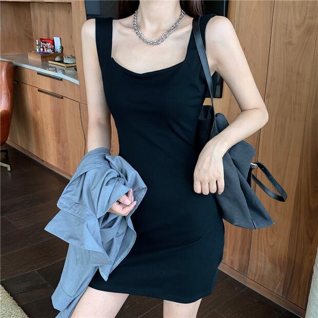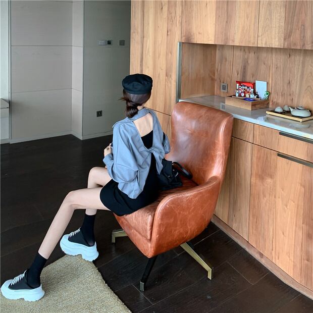 色:グレーコート,黒いドレス