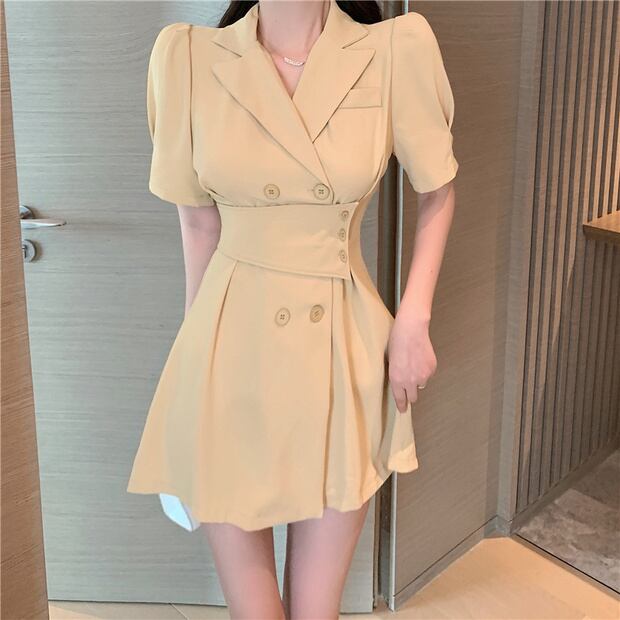 サマースカート ウェストダブルブレストドレス ストリート 夏物 ナナファッション17791284471