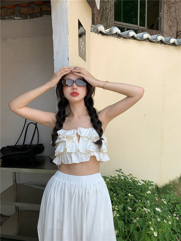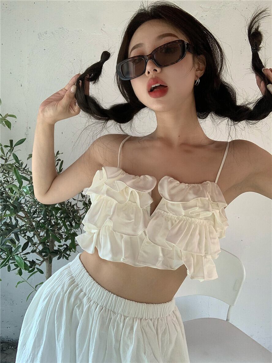 薄手ソリッド カラートップス サマー ホワイト 夏物 ソリッドカラー ナナファッション5480477909