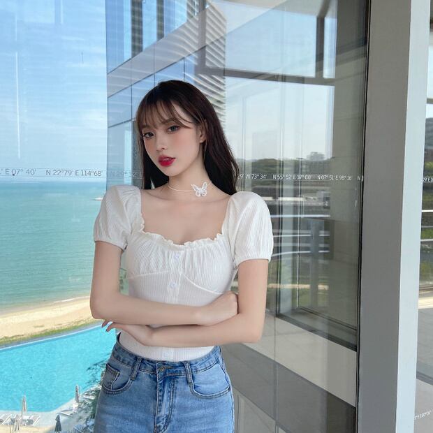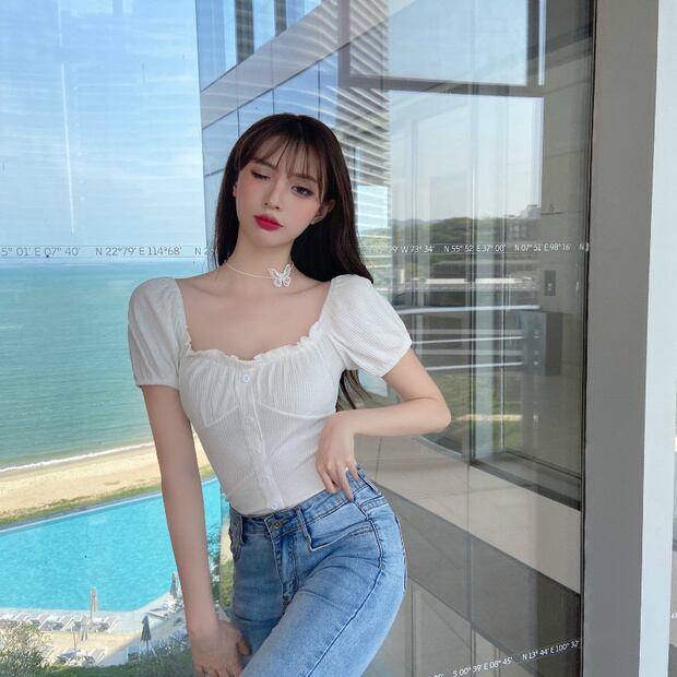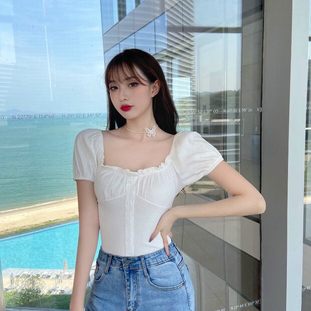 サマースタイルスリーブTシャツ レディースショートトップス 大人ガーリー スウィート キュート カジュアル 夏物 スクウェア ナナファッション23588658209