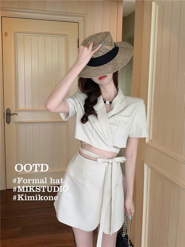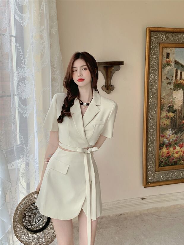 サマースタイルスリムショートジャケット ハイウェストウェストアシンメトリースカート ストリート 夏物 ナナファッション51661305637