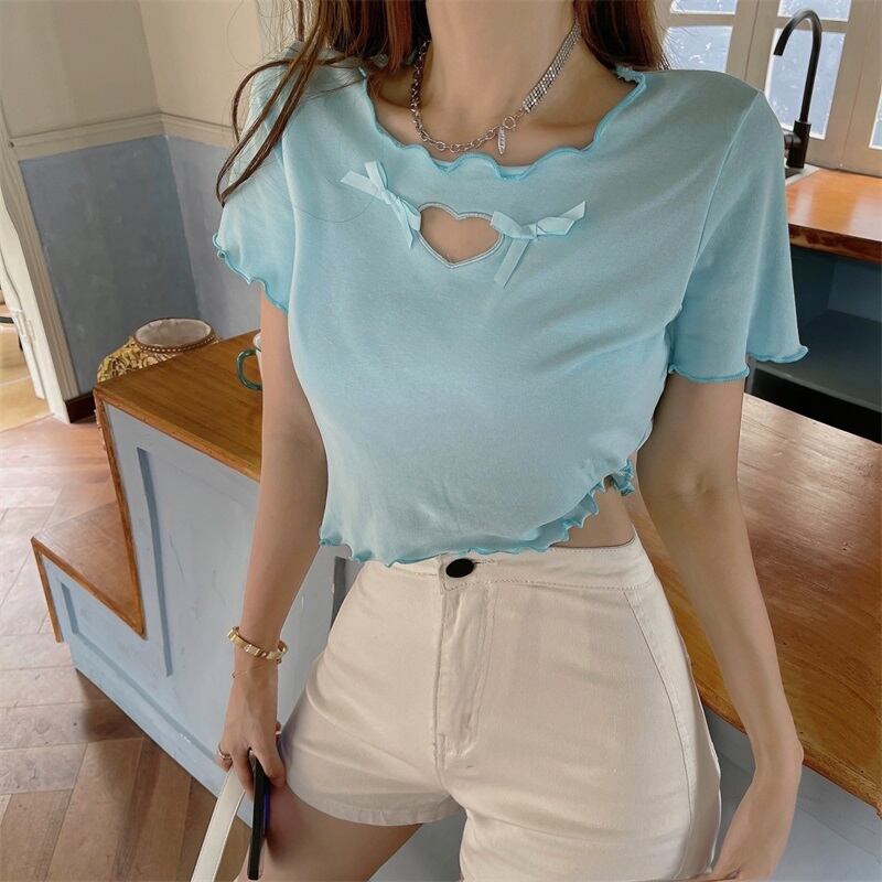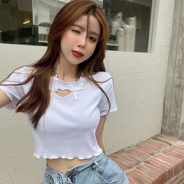 ショートTシャツ レディース薄手リボントップス サマー 夏物 ナナファッション69679906121