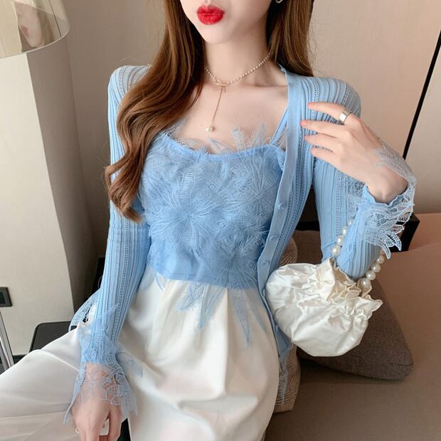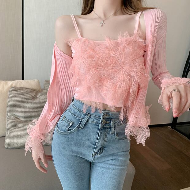 色:青いスリング,ピンクのサスペンダー,ホワイトサスペンダー,ブルーカーディガン,ピンクのカーディガン,白いカーディガン