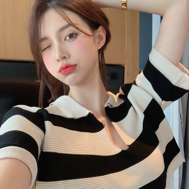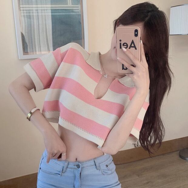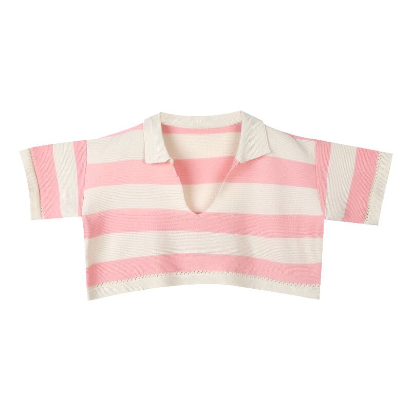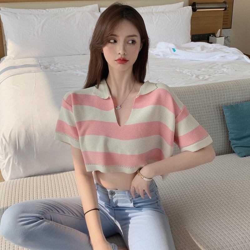 ショートサマースリムクロップドストライプTシャツ シャツ トップス 夏物 ナナファッション47525680266