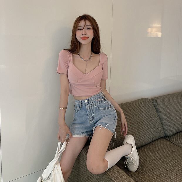 スリムショートTシャツ トップス サマースタイルレディース 夏物 ナナファッション41407209536