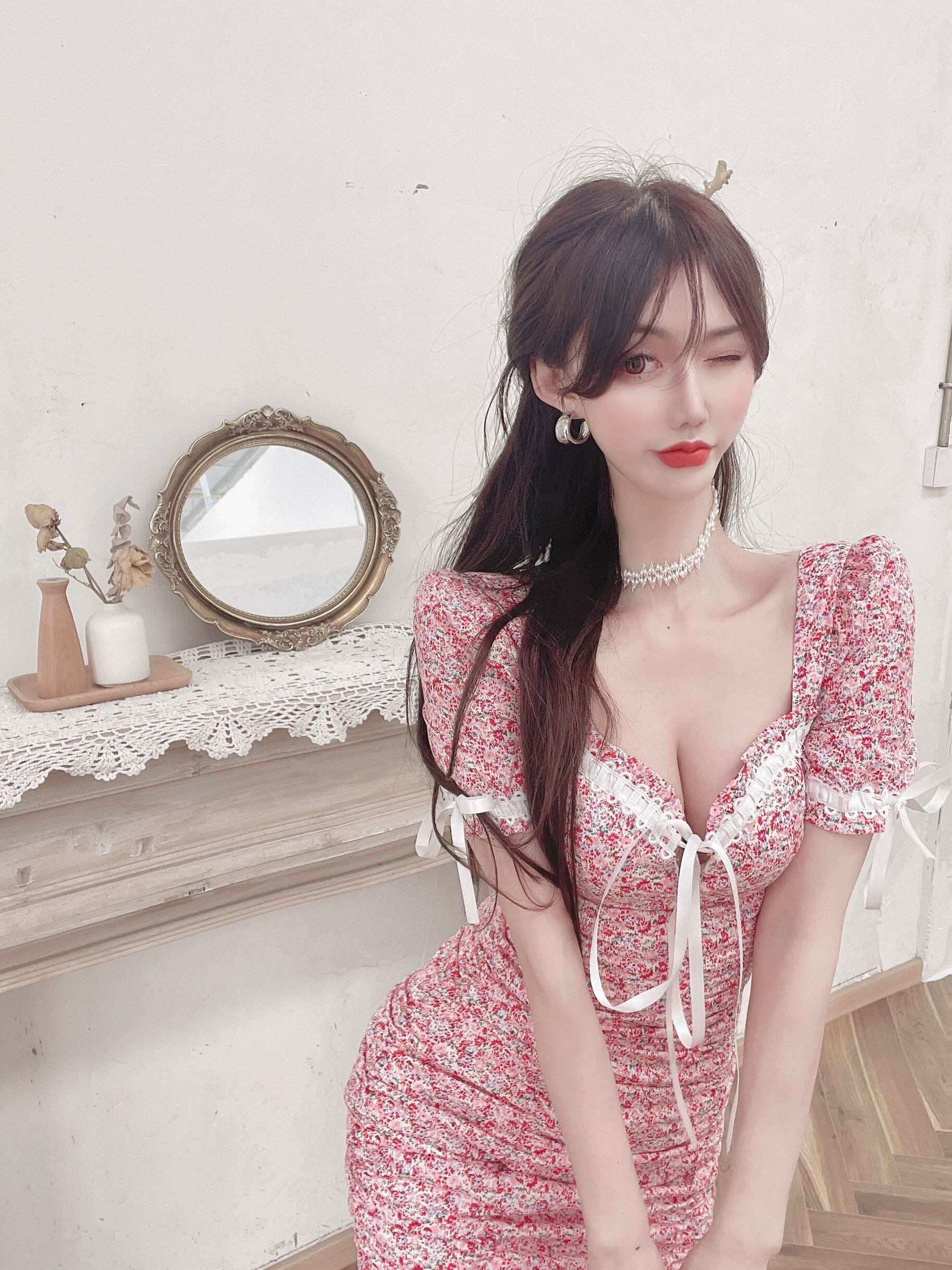 サマースリーブフローラルウェストプリーツドレス スカート 夏物 花柄 ナナファッション86078370708
