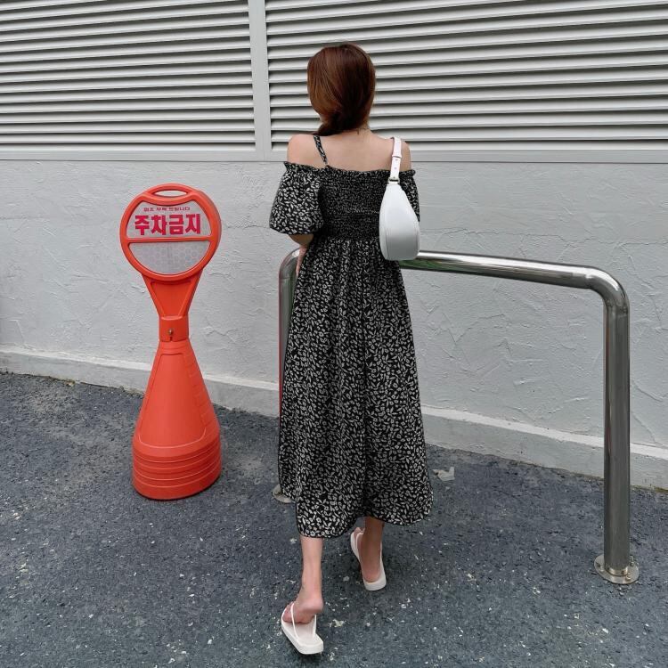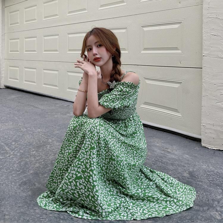 サマーカラー半袖スリーブスリムロングシフォンフローラルドレス ショート ハーフスリーブ 夏物 花柄 スクウェア ナナファッション14611618430