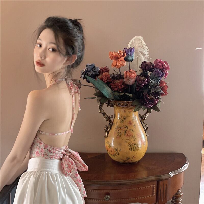 フローラルホルターショートトップス サマー 夏物 花柄 ナナファッション91503608852