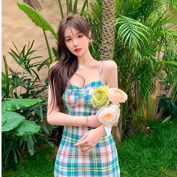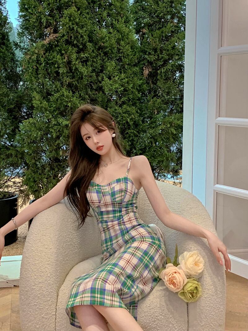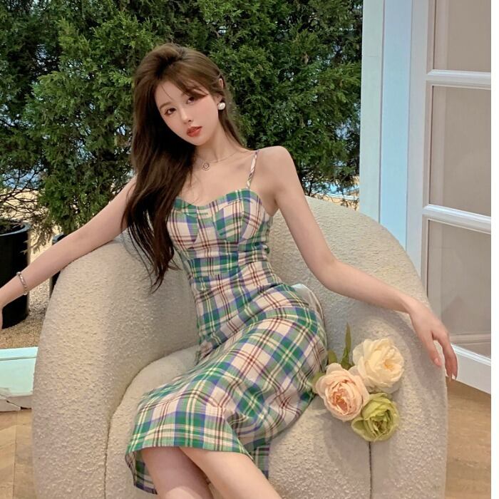 スタンダードスタイル格子柄ウェストスリムドレス レトロ ストリート 大人ガーリー スウィート キュート カジュアル スカート ナナファッション13167514002