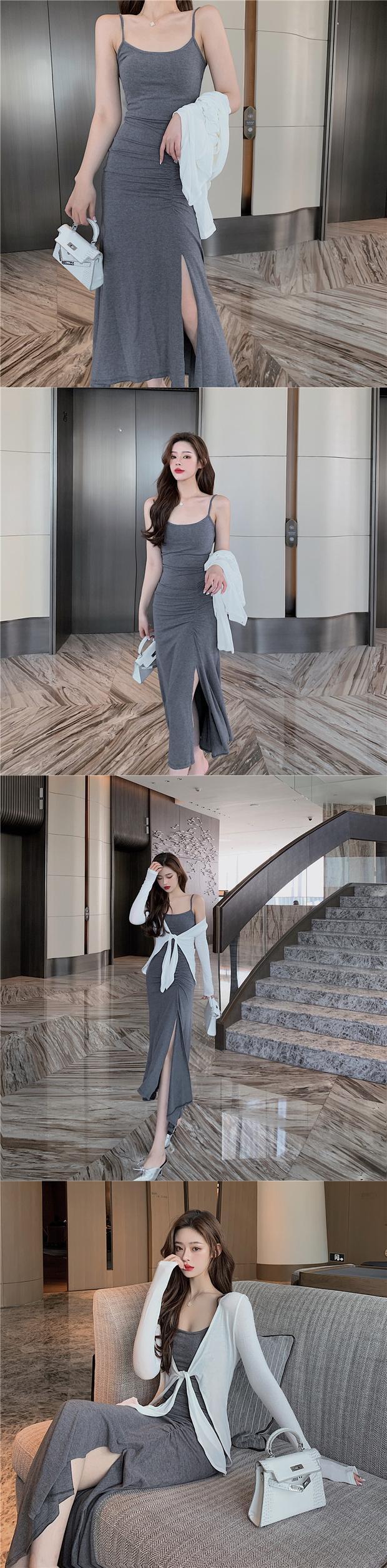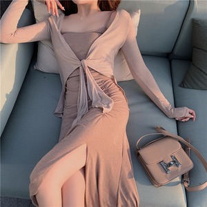 色:ヌードコート,ラテカラーサスペンダードレス,白いコート,スモークグレーサスペンダースカート