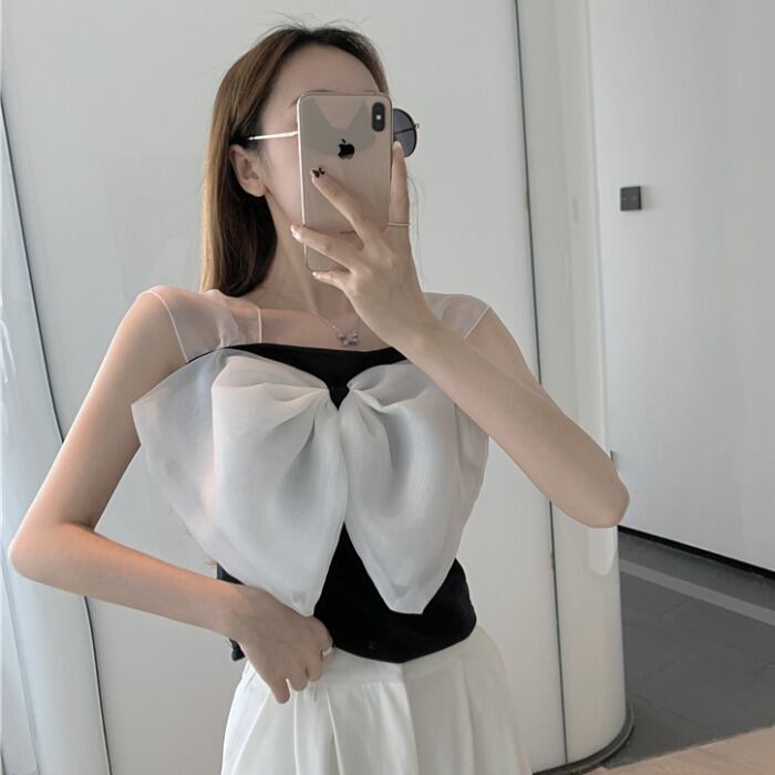 スタイルリボンブラウス サマーホワイトTシャツ レディース 夏物 ナナファッション26136104269