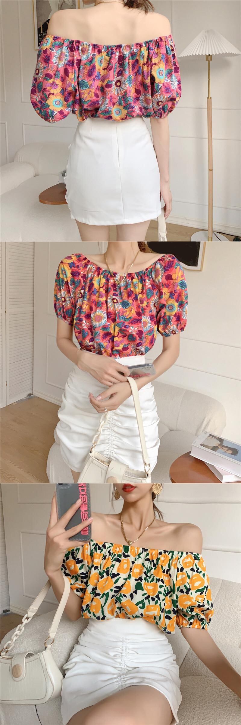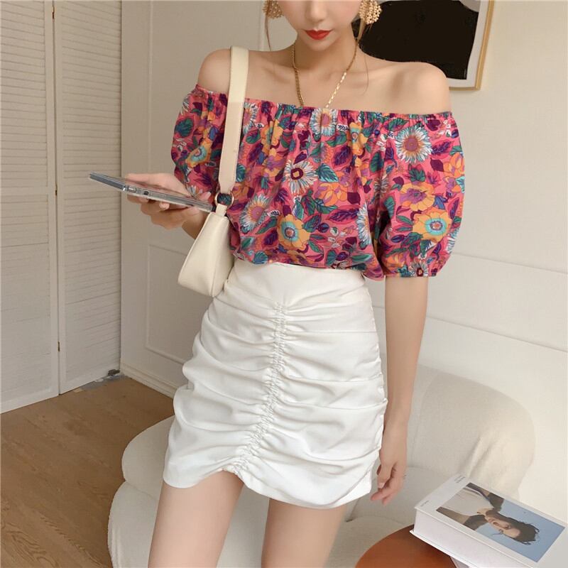 レッドサマーフローラルシャツ ハイウェストウェストスカート 夏物 花柄 ナナファッション98841946466