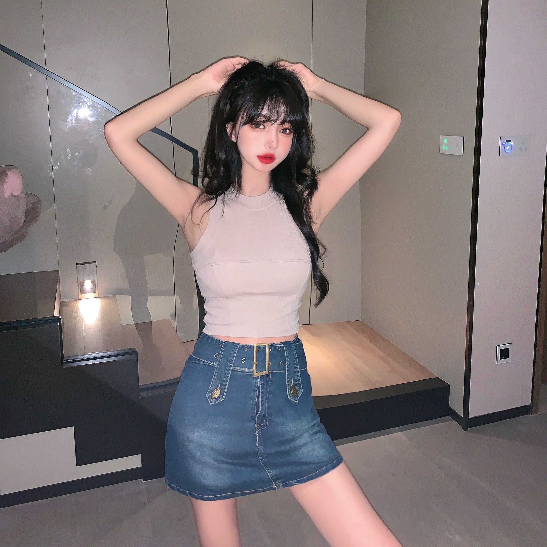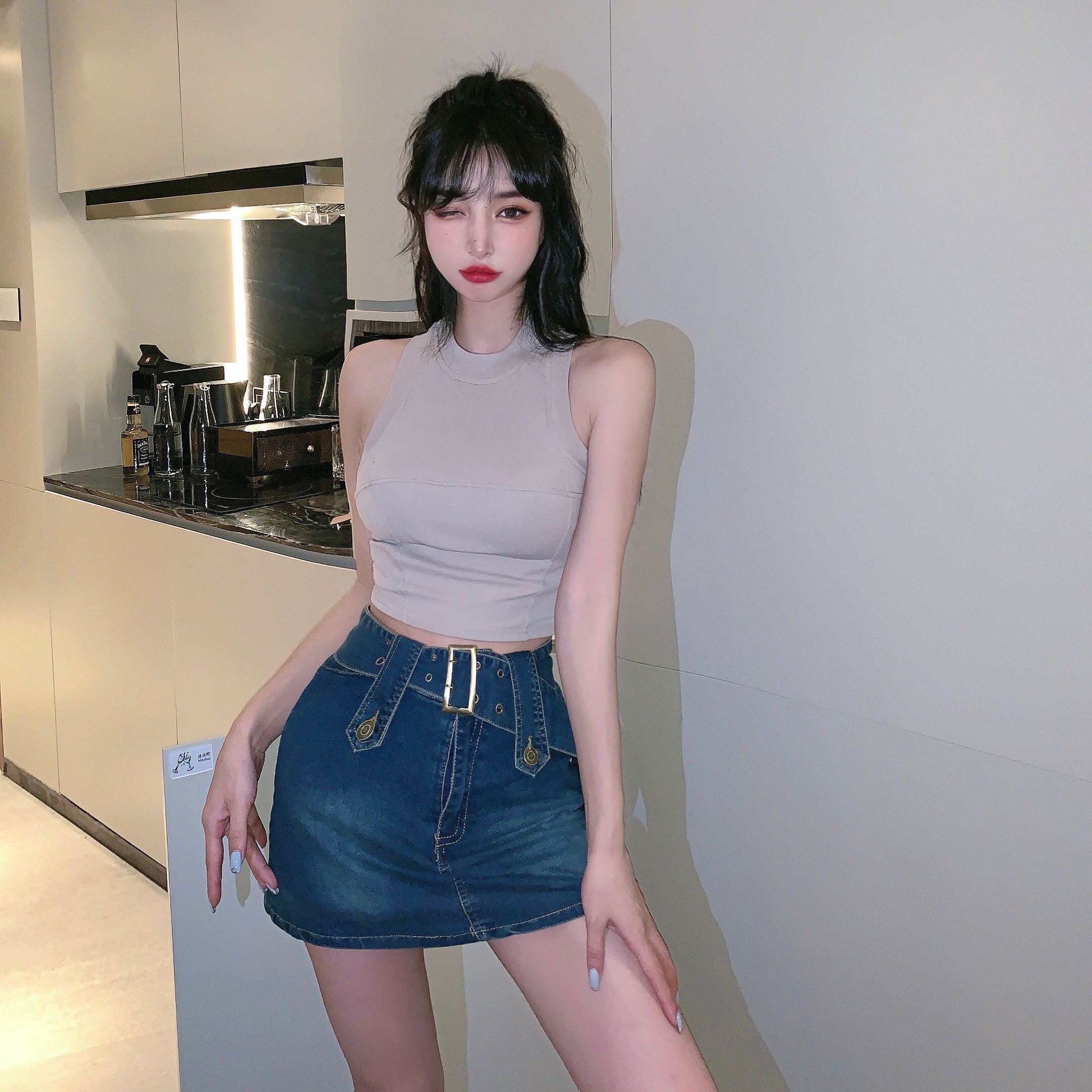 カラーショートハイウェストウェストアームAラインスカート ストリート ナナファッション39764821352