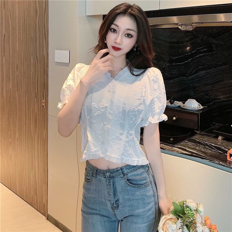 スタンダードフローラルスリーブショートシャツ サマースリムシフォン レトロ 夏物 花柄 ナナファッション82678679560