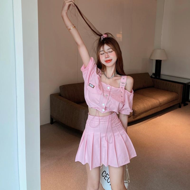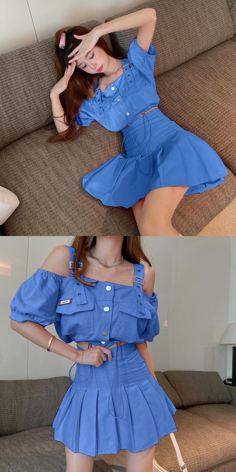 ストラップレスショートトップス ハイウェストウェストプリーツスカート 大人ガーリー スウィート キュート カジュアル ナナファッション71990012850