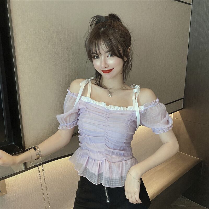 スリーブシフォンシャツ 半袖トップス ショート ハーフスリーブ 大人ガーリー スウィート キュート カジュアル ナナファッション17669271938