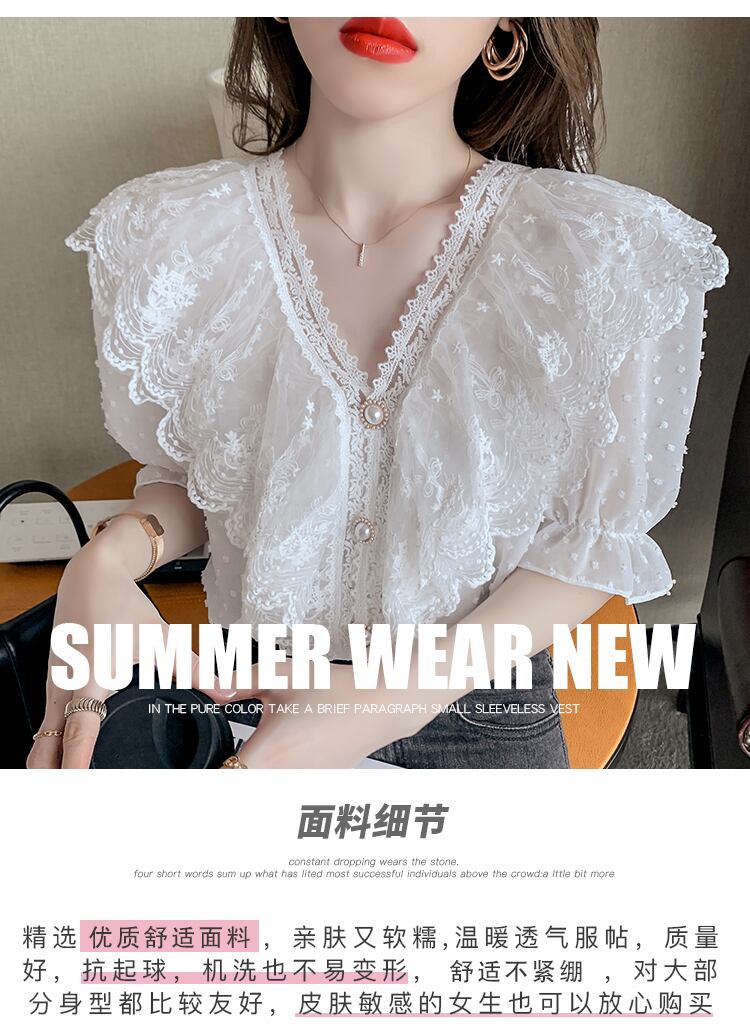 サマースタイルレースシャツ トップス 半袖スリーブシフォン ショート ハーフスリーブ 夏物 ナナファッション74269523730