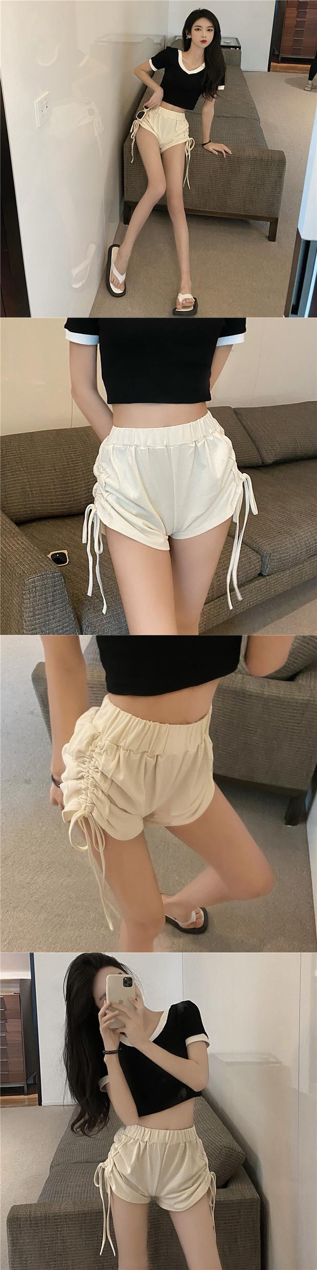 パンツ サマーハイウェストウェストギャザールーズカジュアルショーツ レディース 大人ガーリー スウィート キュート 夏物 ブルマー ピュア ナナファッション65815828151