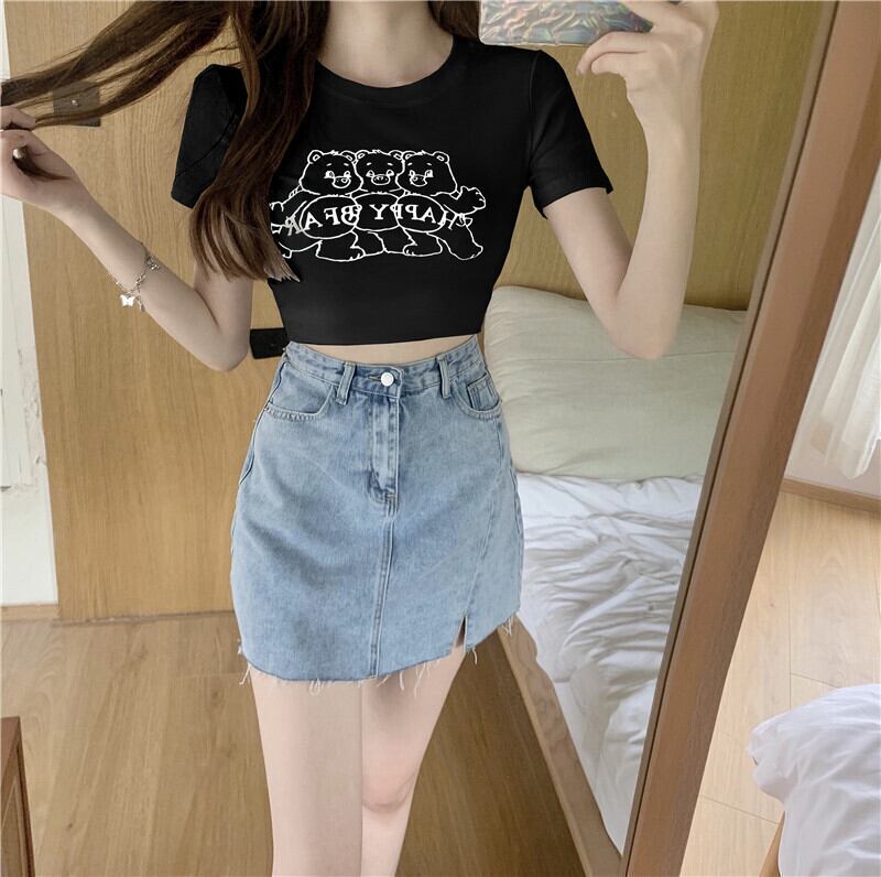 ショートTシャツ ハイウェストホワイトトップス ナナファッション78936666225
