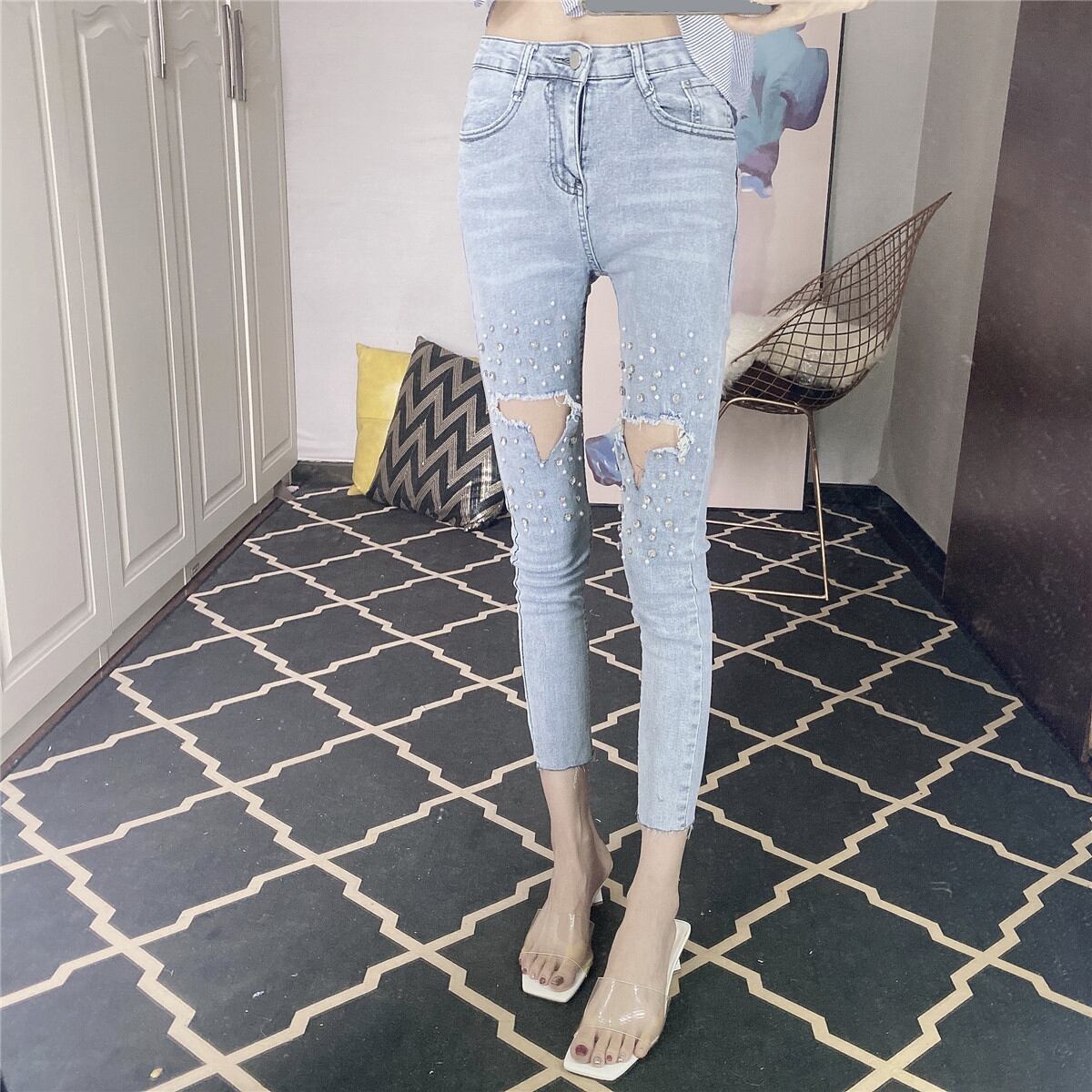 サマースキニージーンズ ハイウェストウェストスリムパンツ レディース 夏物 ナナファッション17736805094