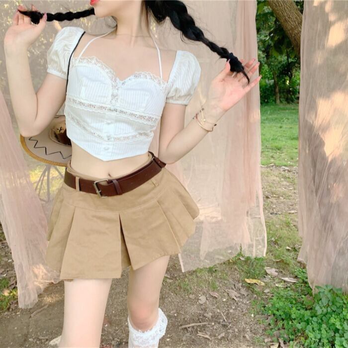ホワイトホルターレースシャツ トップス レディース ストリート ナナファッション21405009056